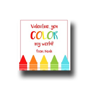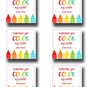 Printable Valentines You Color My World Personalized Digital Download
