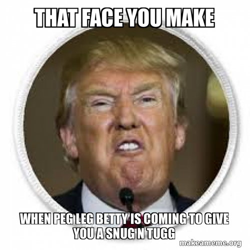 That face you make When peg leg Betty is coming to give you a snug n