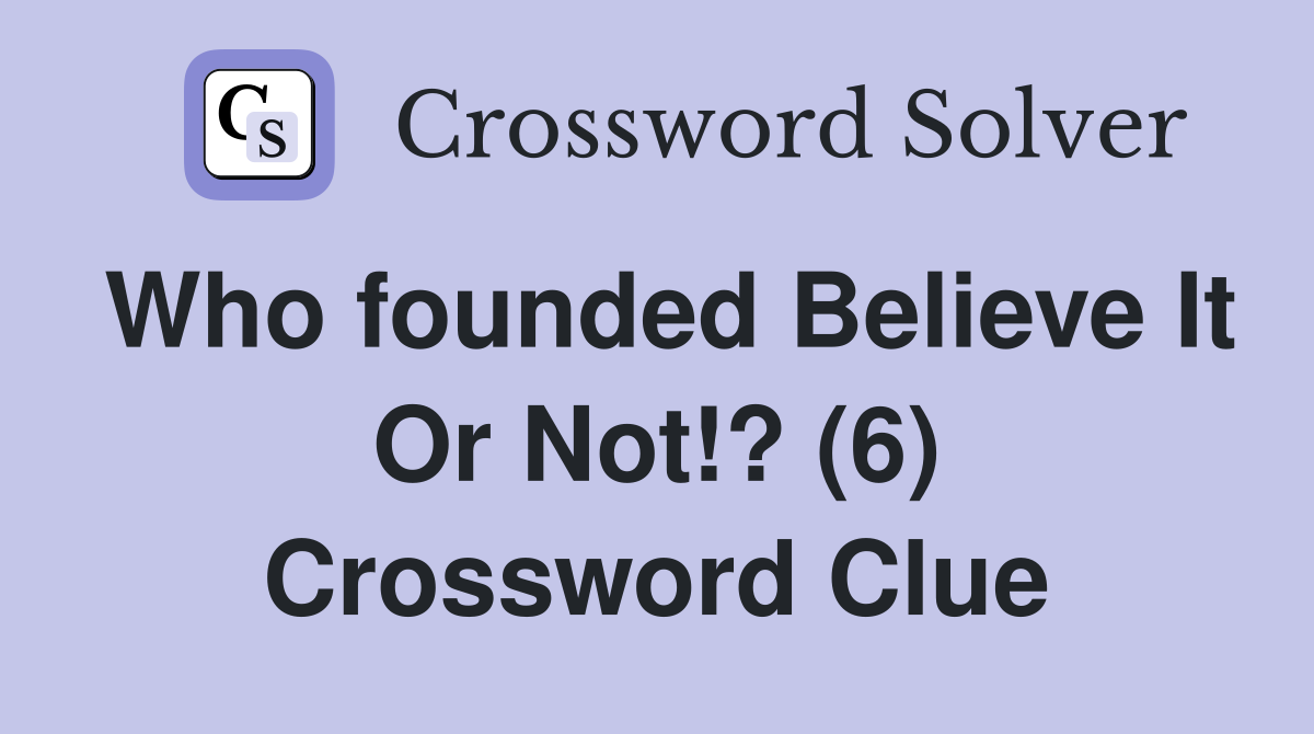 Who founded Believe It Or Not ? (6) Crossword Clue Answers