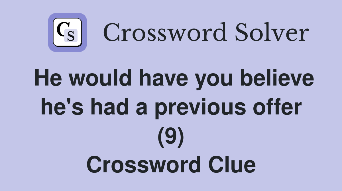 He would have you believe he #39 s had a previous offer (9) Crossword