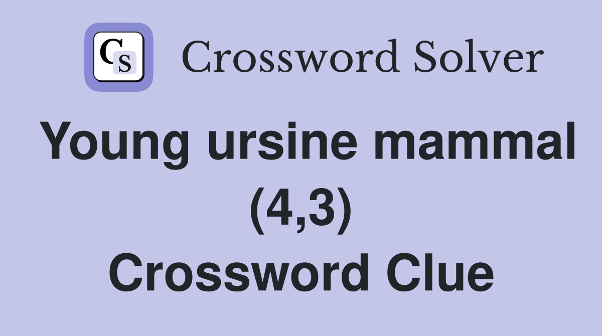 Young ursine mammal (4 3) Crossword Clue Answers Crossword Solver