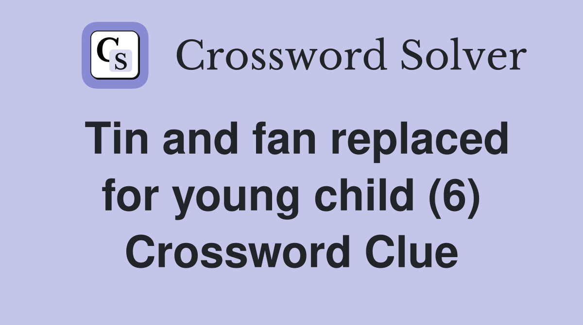 Tin and fan replaced for young child (6) Crossword Clue Answers