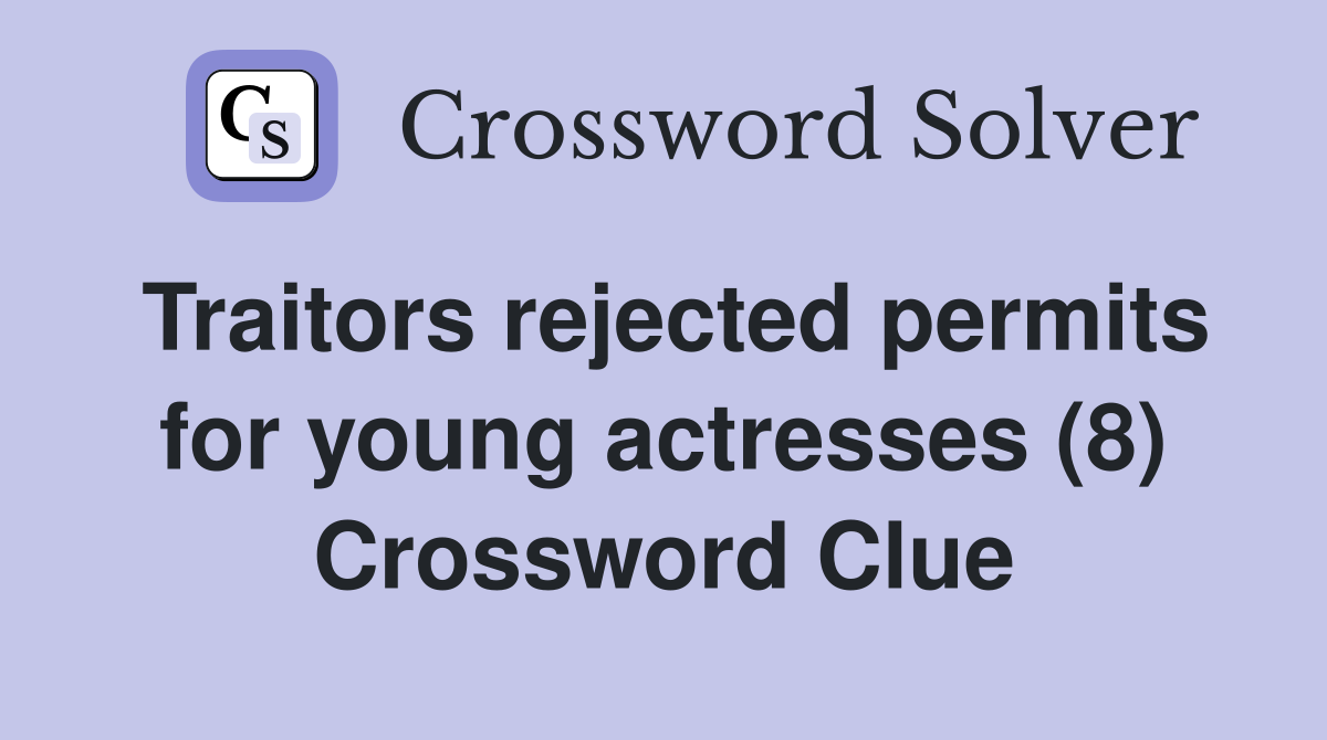 Traitors rejected permits for young actresses (8) Crossword Clue