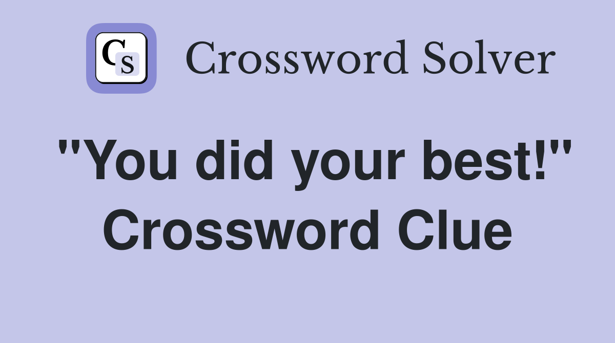 quot You did your best quot Crossword Clue Answers Crossword Solver
