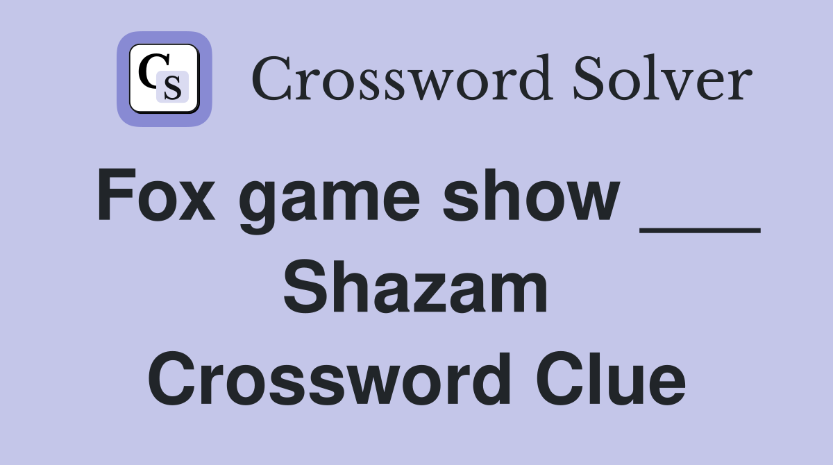 Fox game show Shazam Crossword Clue Answers Crossword Solver