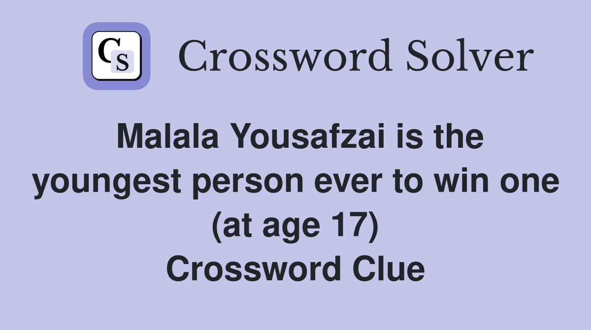 Malala Yousafzai is the youngest person ever to win one (at age 17