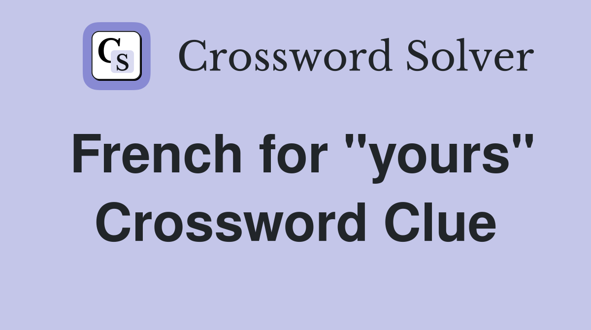 French for quot yours quot Crossword Clue Answers Crossword Solver