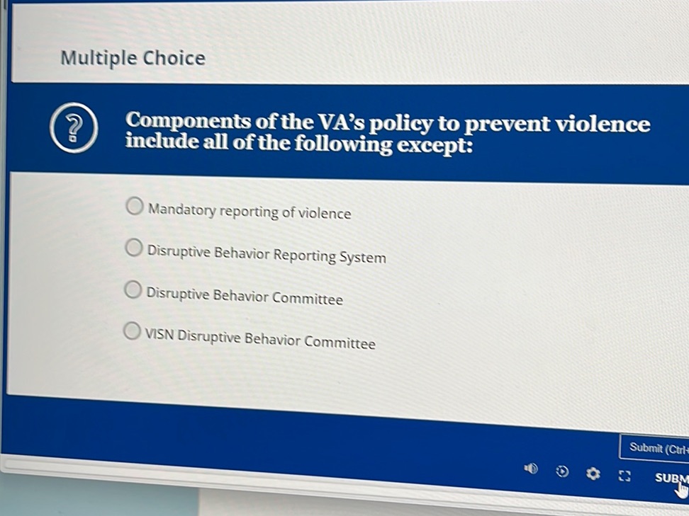 Solved: Components of the VA s policy to prevent violence include all