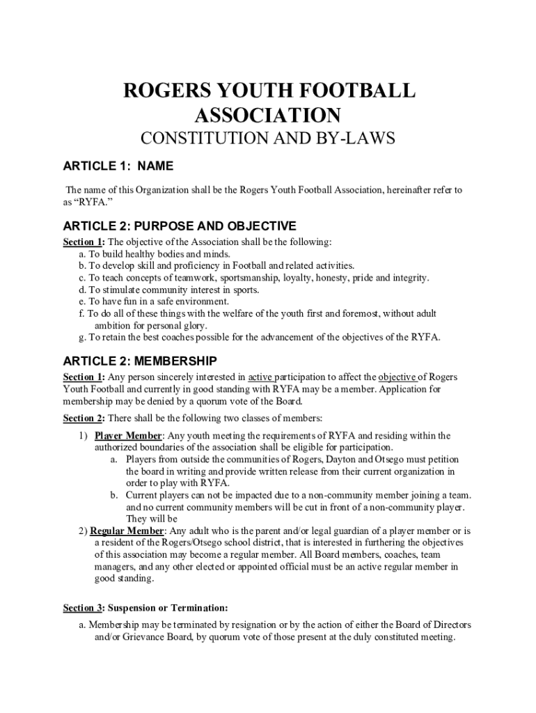 Youth Football Bylaws Template Fill Online Printable Fillable
