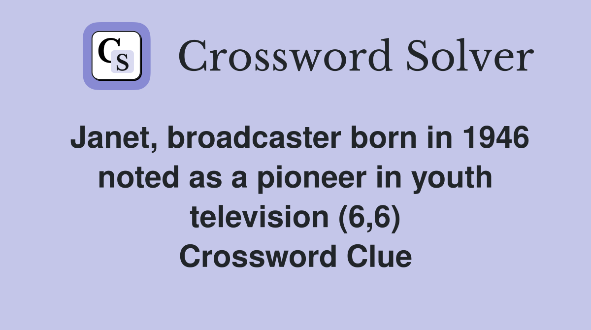 Janet broadcaster born in 1946 noted as a pioneer in youth television