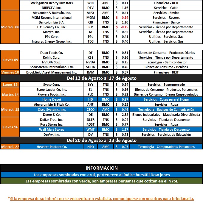 Roberto Guadalupe Análisis Acciones de Wall Street : Calendario