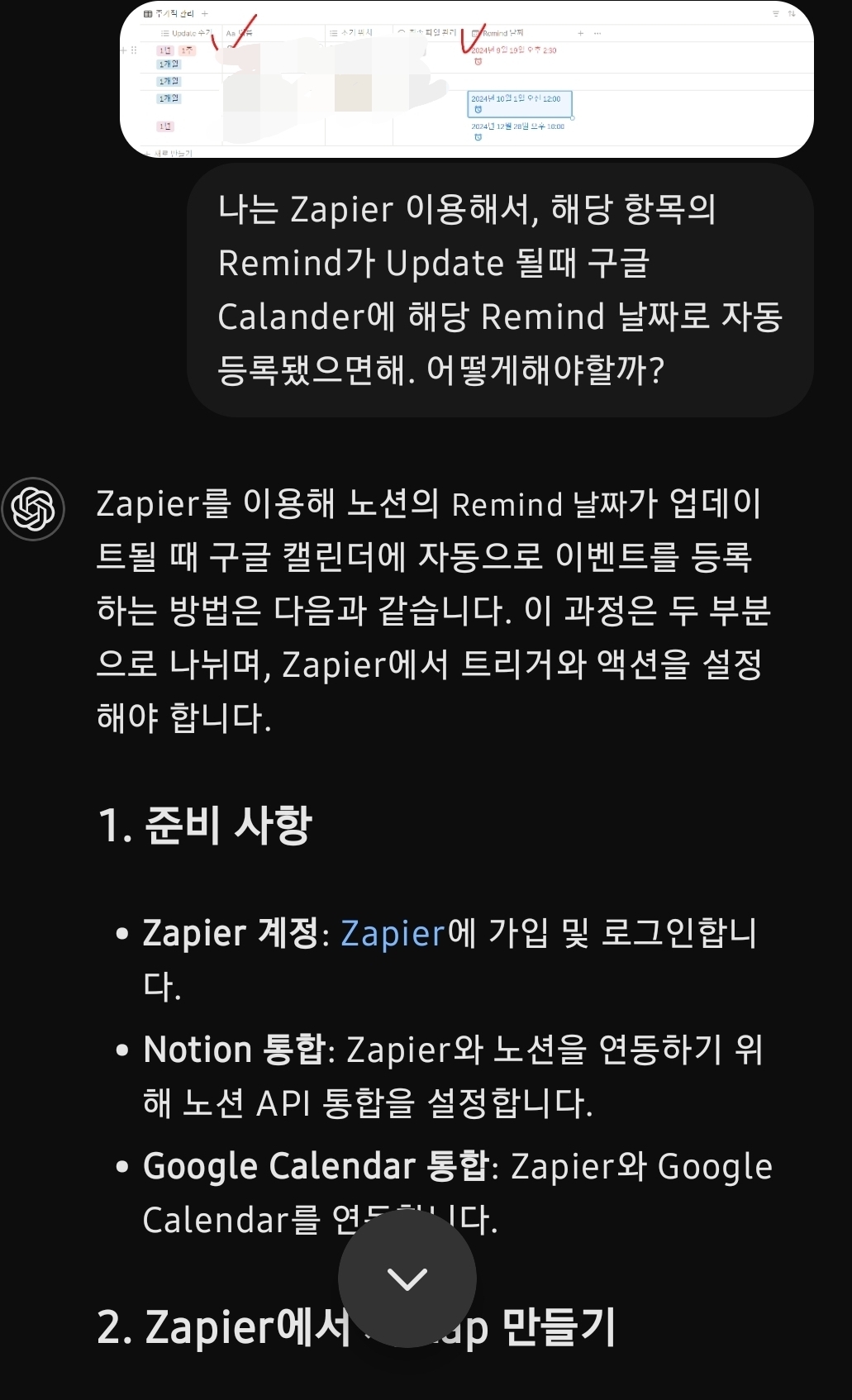 AI 활용 (챗GPT) 업무 활용편 (Notion Google Calendar 연동 Zapier 사용)