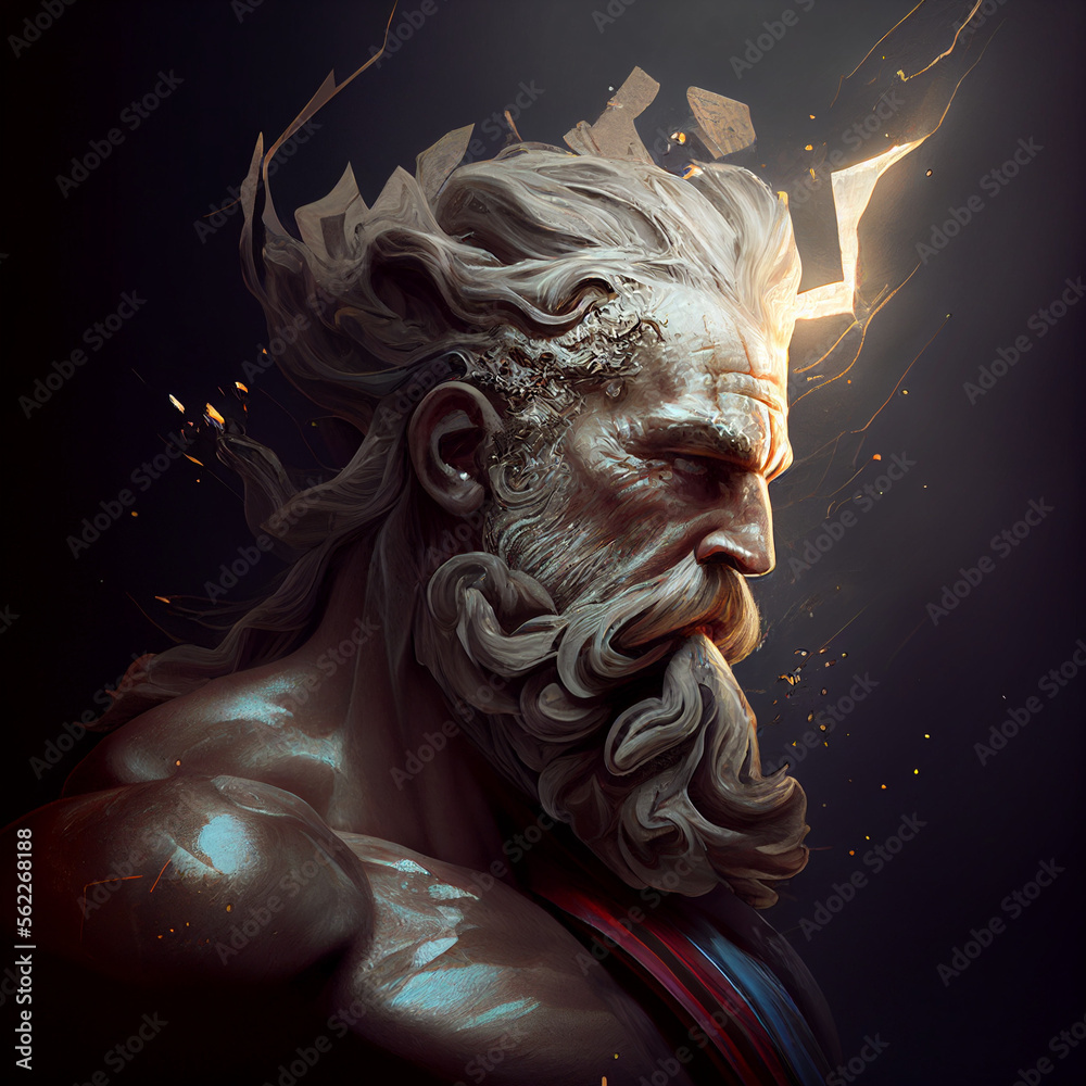 Portrait of Zeus Statue of Zeus god statue greek god zeus Stock