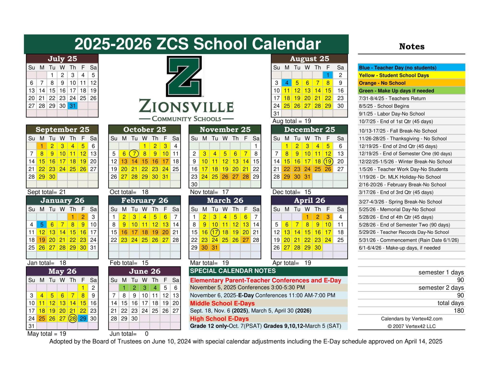 Zionsville Community Schools Calendar 25 26 Revised PDF EduCounty