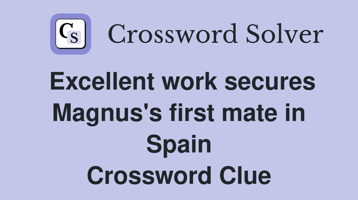 Excellent work secures Magnus #39 s first mate in Spain Crossword Clue