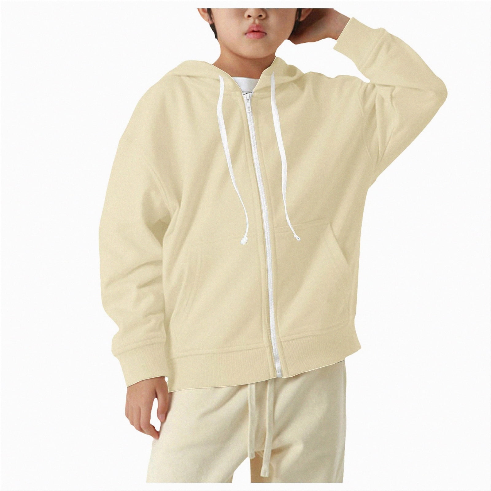 Boys Winter Jacket Zip Up Long Sleeve Solid Color Hoodies Jacket