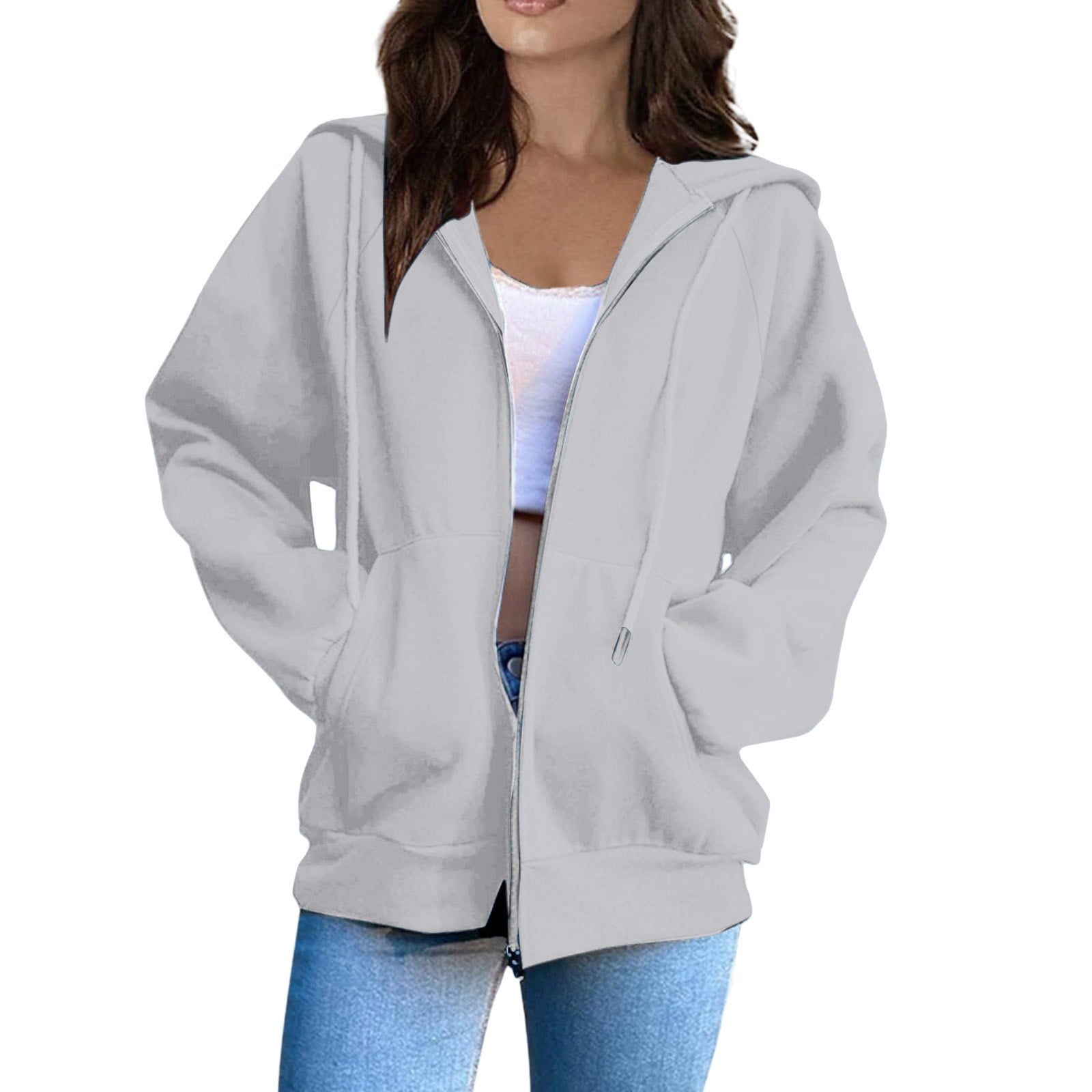 AJHSAKLt Zip Up Hoodie Women Winter Warm Fashion Long Sleeve Loose