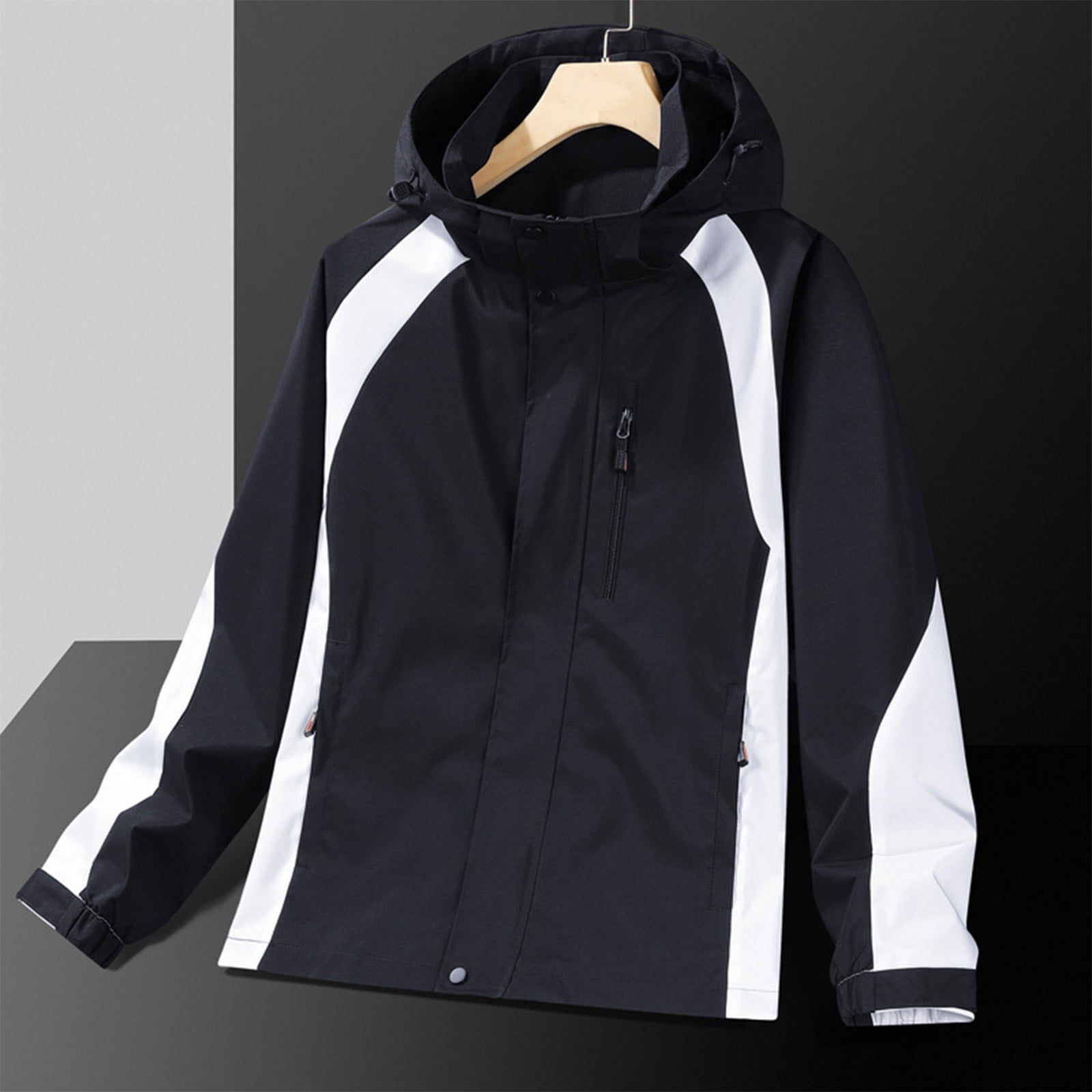 COSFO Jacket for Men Colorblock Hooded Zip Up Windbreaker Hiking