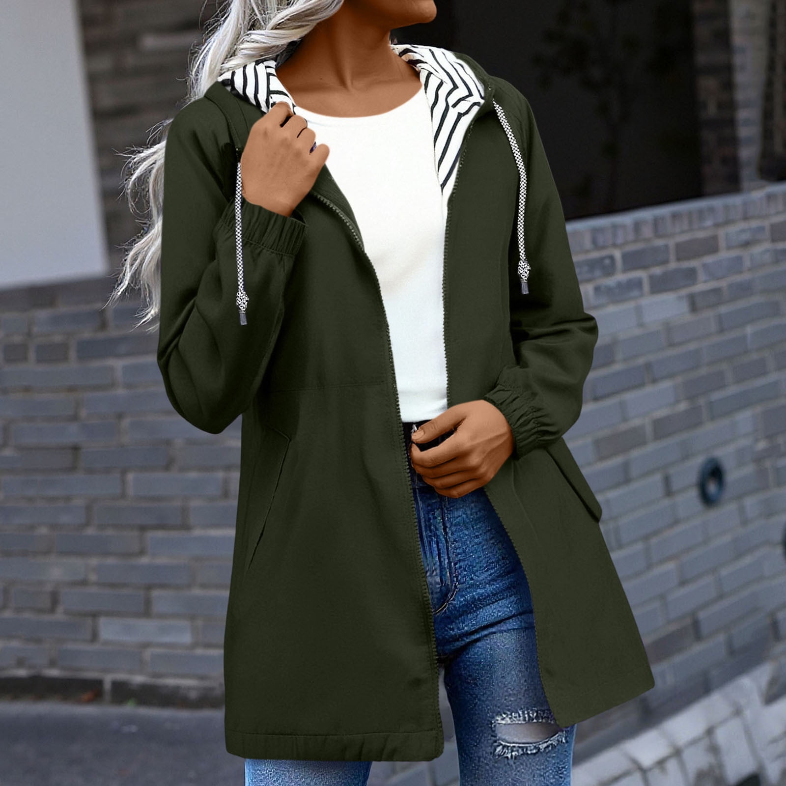 EchfiProm Womens Rain Jacket Army Green Windproof Zip up Streetwear