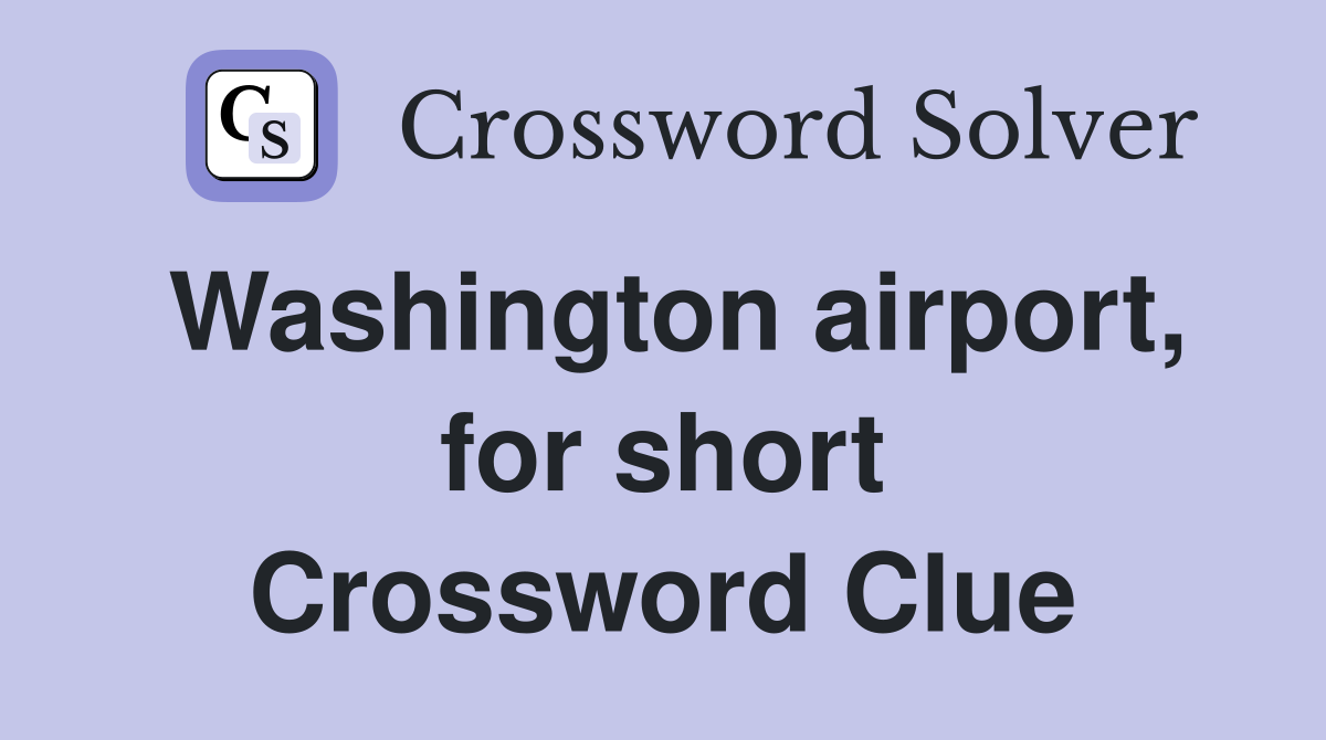 Washington airport for short Crossword Clue Answers Crossword Solver