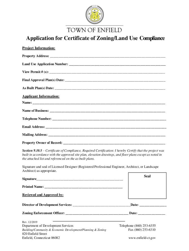 Fillable Online ZONING CERTIFICATE APPLICATION FORM 2019 2020 Fax Email