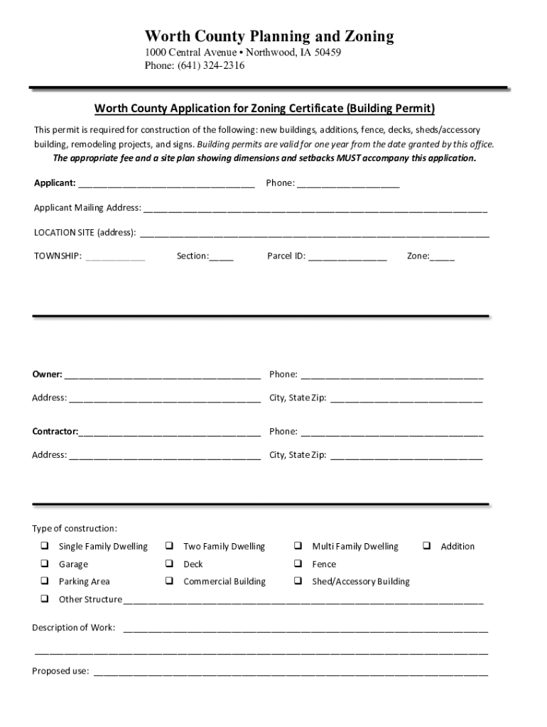 Fillable Online Zoning Certificate Application (Building Permit) Fax