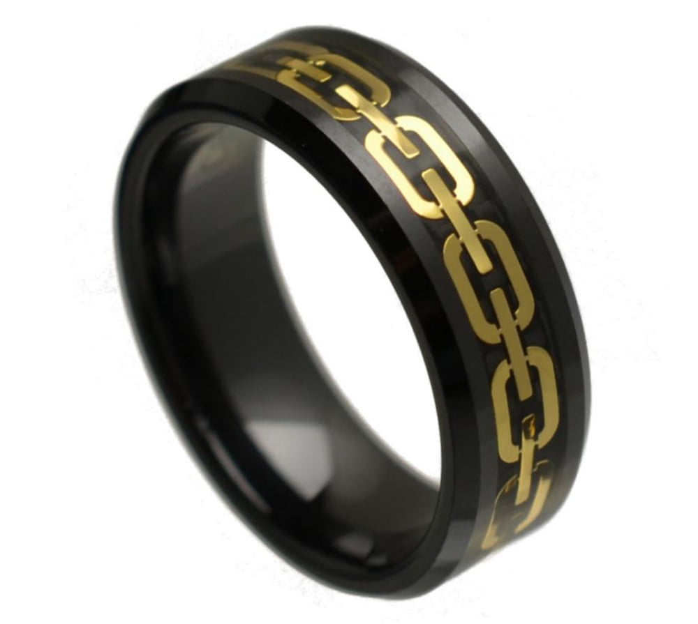 8mm Black Ceramic Yellow Gold Plated Chain Design Inlay Wedding Band